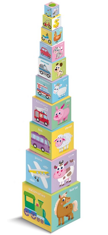 Angielski. Piramida malucha + książeczka to sposób na efektywną naukę poprzez zabawę.
