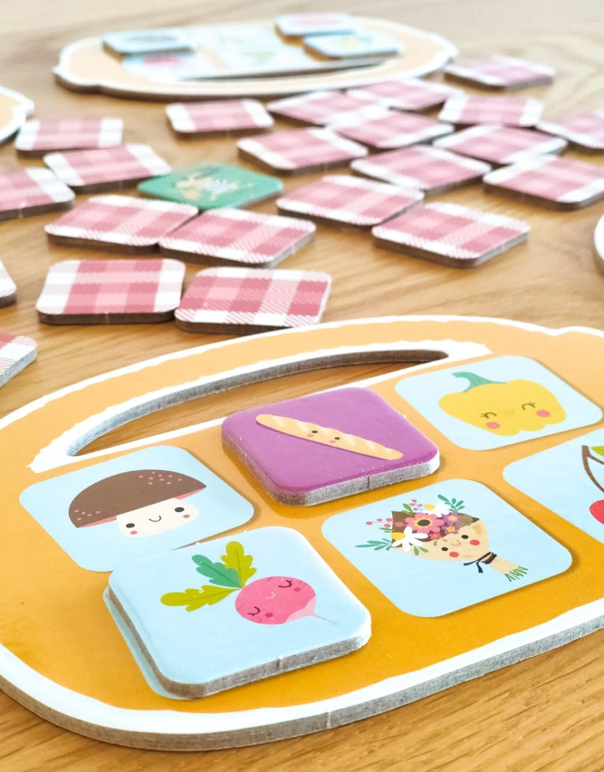 Gra przeznaczona jest dla 2-4 graczy w wieku od 3 lat, idealna do rozwoju spostrzegawczości i pamięci. Zawiera 4 koszyki i 40 kart do gry (warzywa, owoce, karty ułatwiające rozgrywkę, karty przeszkadzające). Czas rozgrywki około 15 min. Gra świetnie sprawdzi się również do nauki warzyw i owoców. Idealny pomysł na prezent. Pomysł autorstwa Marilyne Valnet, ilustracje Inga Wilmink.