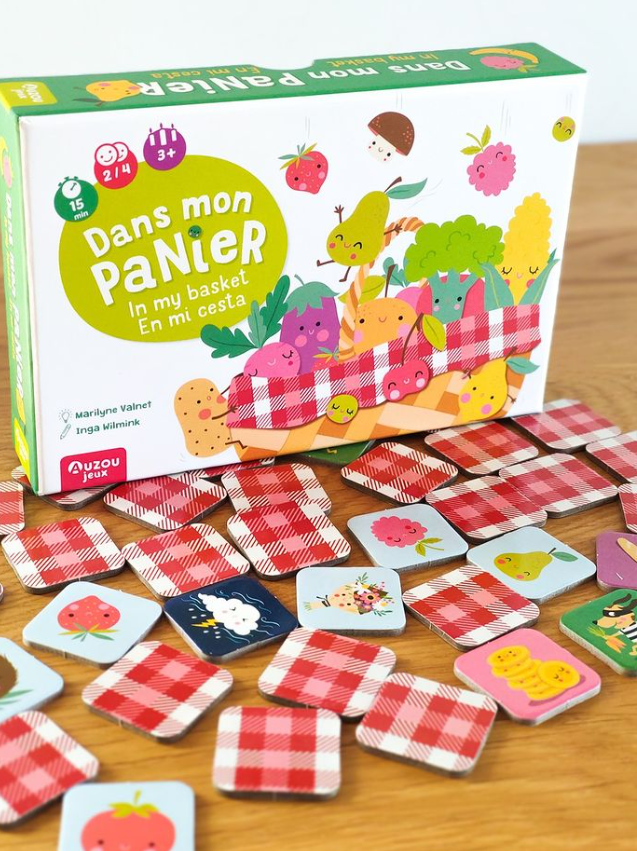 Gra Koszyk z zakupami od Auzou. Wybierz się na targ i jako pierwszy wypełnij swój koszyk pysznymi owocami i warzywami! Uważaj na groźne burze i zepsute jabłka, które skomplikują Twoje zadanie! To świetna gra dla dzieci od 3 roku życia, sprawdzi się również jako pomysł na rozrywkę podczas rodzinnego wieczoru gier. Każdy z graczy ma za zadanie zapamiętać gdzie znajdują się karty z warzywami i owocami, które musi kupić i umieścić je w swoim koszyku, musi jednak uważać na niespodzianki, które mogą uczynić jego zadanie łatwiejszym lub trudniejszym. Uwaga na psie złodziejaszki wyjadające zawartość koszyka!