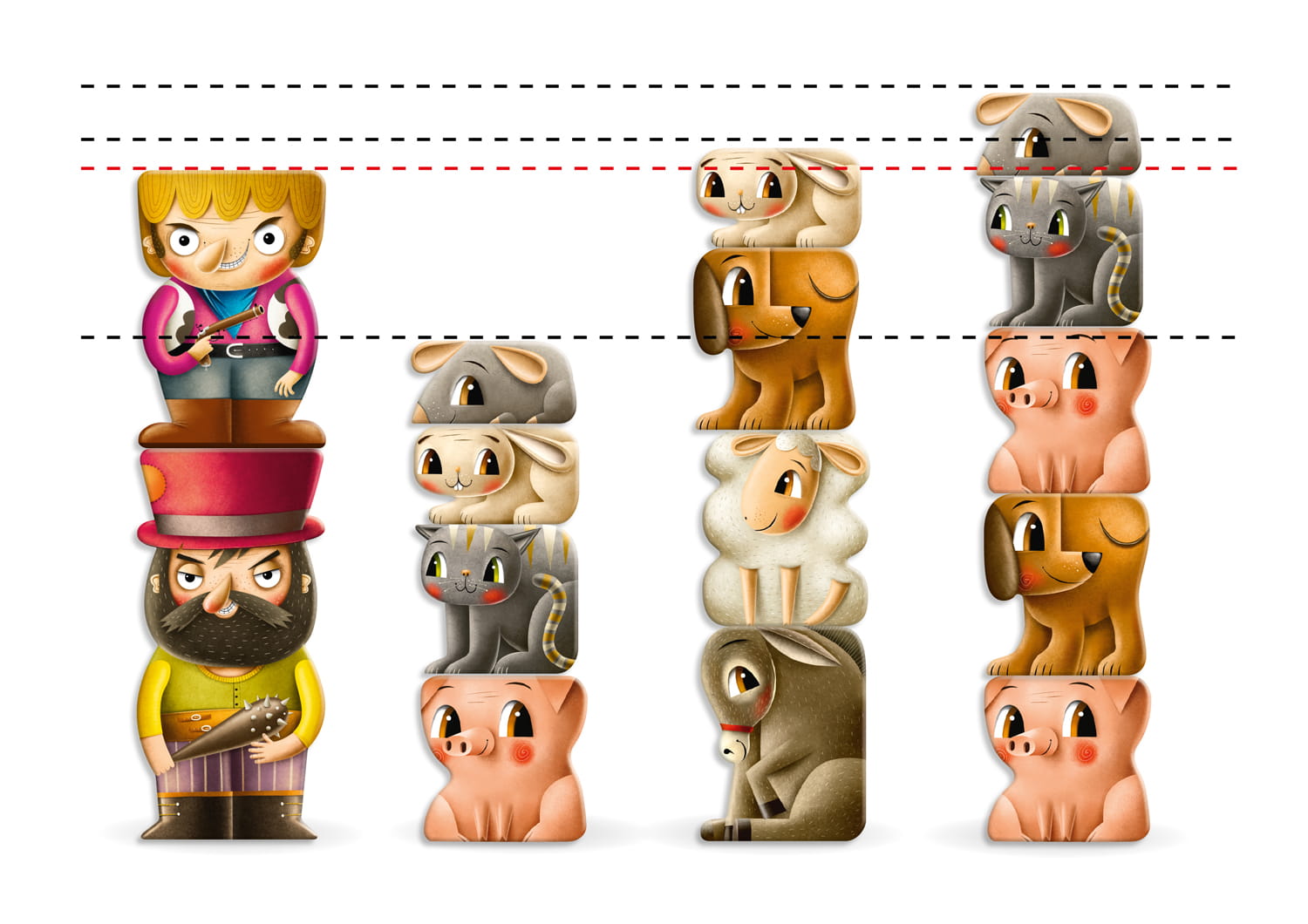 W grze zbieracie swoją gromadkę zwierzaków i próbujecie ułożyć z nich wieżę na tyle wysoką, by przerosła zbójów.