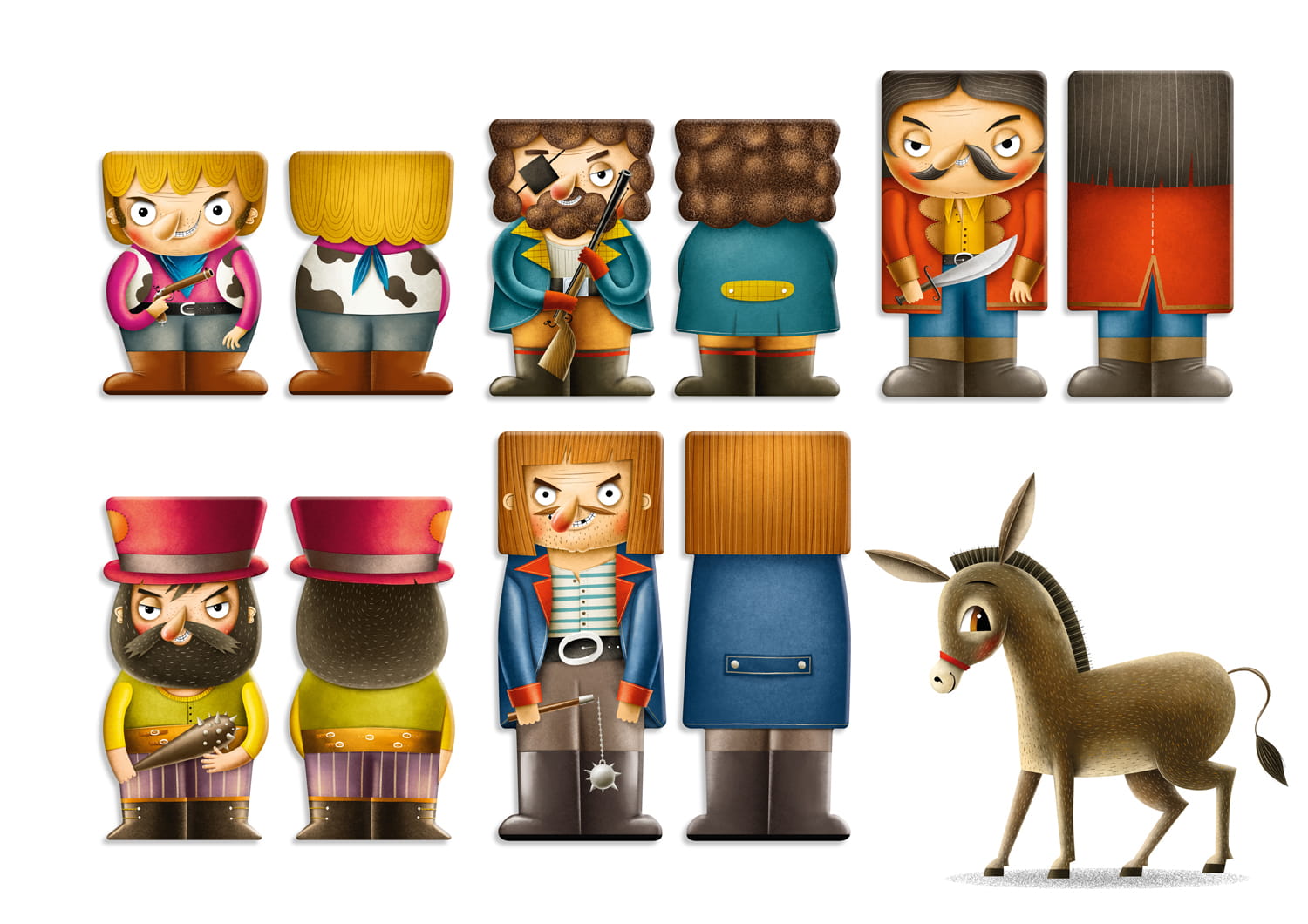 Niestety na ich drodze pojawili się rozbójnicy… Sprytne zwierzęta wymyśliły świetny sposób, by zbójów wystraszyć: stanęły jeden na drugim i zaczęły ryczeć wniebogłosy.