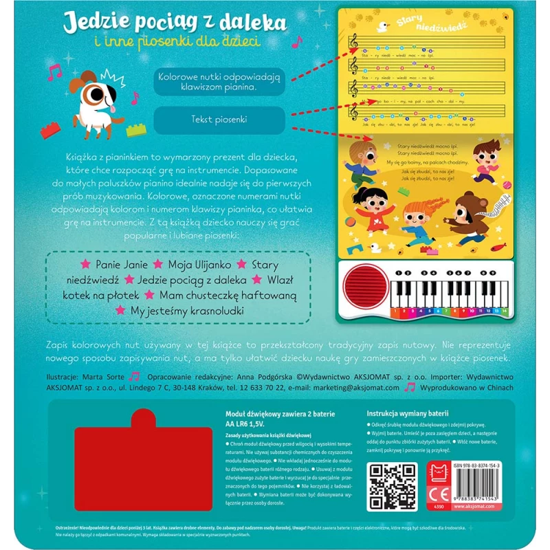Jedzie pociąg z daleka i inne piosenki dla dzieci. Sam zagraj i zaśpiewaj piosenki. Książka z pianinkiem. wyd. Aksjomat