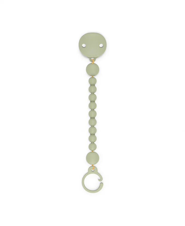 Klips został zbudowany z bezpiecznego, medycznego silikonu w formie łańcuszka z połączonymi koralikami, co zapobiega połknięciu i zadławieniu się.