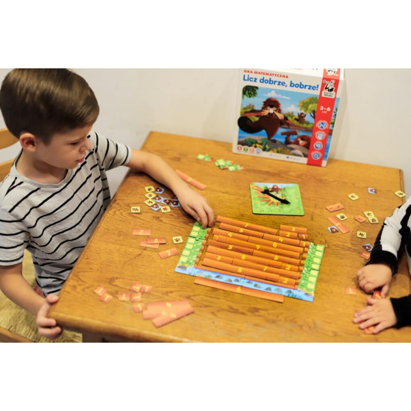 "Licz dobrze, bobrze" (3-6 lat) gra matematyczna dla przedszkolaków, które dołączają do ekipy pomysłowych bobrów i ścigają się z innymi graczami, układając tamę. Przy okazji ćwiczą liczenie w zakresie 1-20 i umiejętność myślenia logicznego.