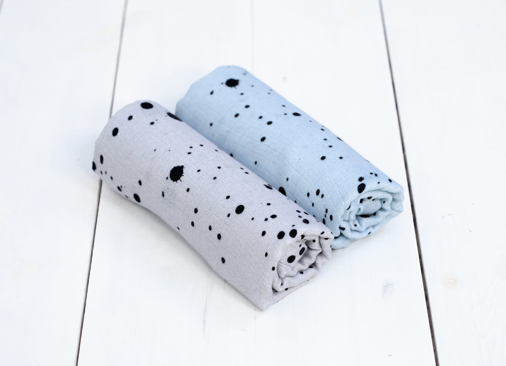 Muślinowe pieluszki INK 2-pak 75 x 75 szara/niebieska Sleepee