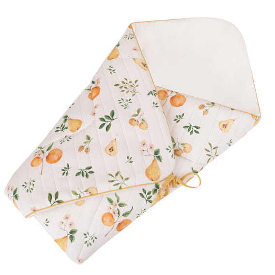 Rożek wykonany został z zewnątrz z bawełny satynowej, podwójnie zmiękczonej. Jest to tkanina w 100% wykonana z bawełny, dzięki czemu jest przewiewna i przyjemna dla skóry maluszka. Satynowy splot sprawia, że jest ona delikatna i gładka w dotyku. Dodatkowo materiał został przepikowany co dodaje mu elegancji. W środku wykończony jednobarwną delikatną bawełną.