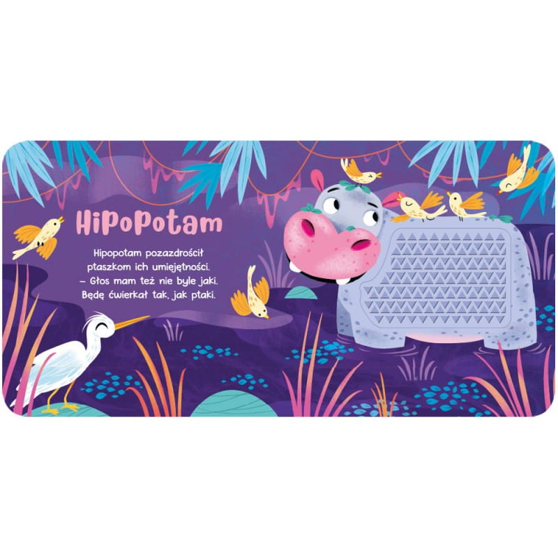 Barwne i odpowiednie dla dziecka ilustracje, ciekawa tematyka oraz zabawne wierszyki o bohaterach książeczki połączone z zabawą w dotykanie silikonowych elementów.