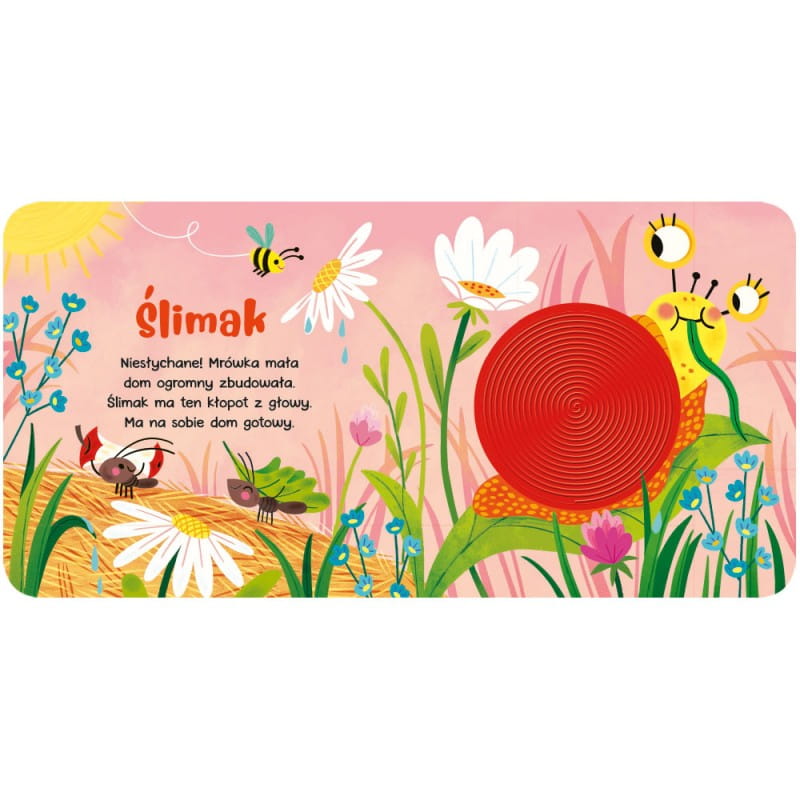 Barwne i odpowiednie dla dziecka ilustracje, ciekawa tematyka oraz zabawne wierszyki o bohaterach książeczki połączone z zabawą w dotykanie silikonowych elementów.
