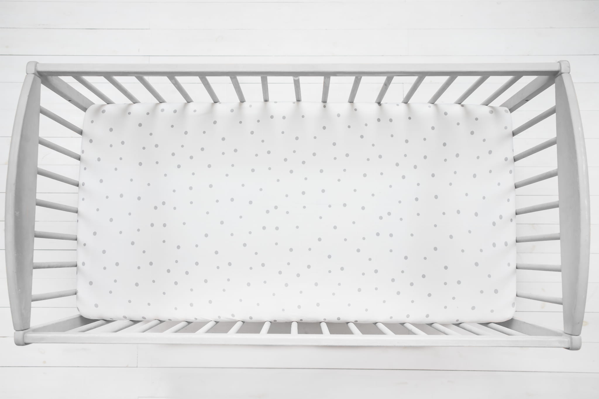 Prześcieradło do łóżeczka120x60 szare kropki Sleepee