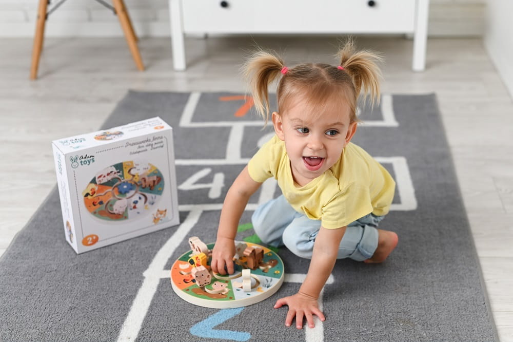 Przesuwanka drewniana Zwierzęta z farmy 2l+ AdamToys