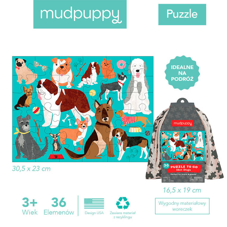 Puzzle podróżne w woreczku Pieski 36 elementów 3+ Mudpuppy
