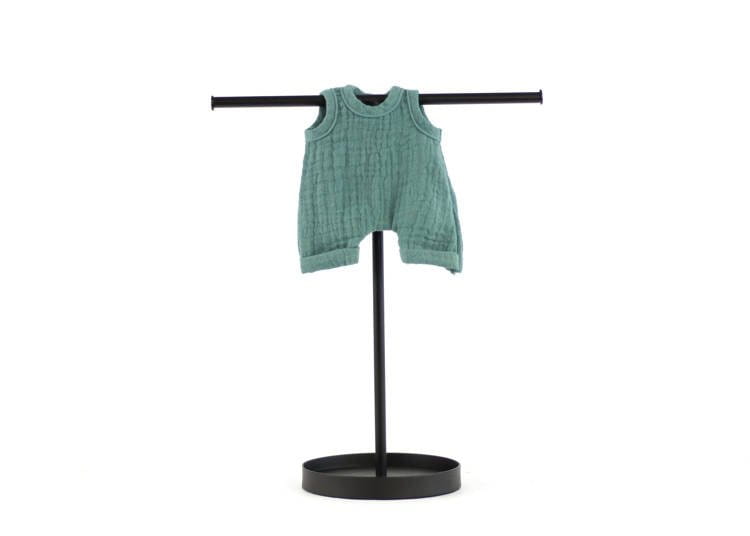 Ręcznie uszyte długie spodenki kombinezon z delikatnego muślinu bawełnianego typu double gauze. Ubranko zapinane jest na bezpieczne napy umieszone na ramionach. Maluszek ubierając swoją laleczkę będzie dzielnie trenować małą motorykę.