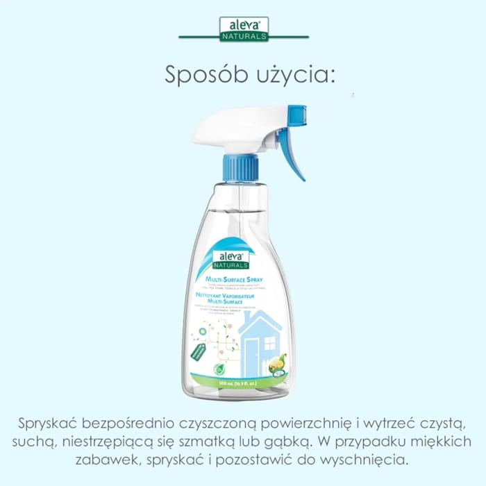 Aleva Naturals Spray do dezynfekcji to wyjątkowy produkt specjalnie zaprojektowany z myślą o najmłodszych. Ten bezpieczny i wegański certyfikowany środek czyszczący bez użycia wybielaczy i ostrych chemikaliów idealnie sprawdzi się do zabawek i przedmiotów z otoczenia dziecka.