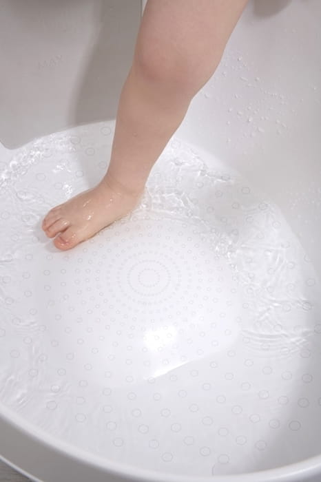 Wanienka o wyjątkowym kształcie została zaprojektowana tak, aby podwyższyć komfort kąpieli dzieci, które samodzielnie siedzą. Piankowe oparcie gwarantuje przyjemne wsparcie dla pleców oraz ciepło i wygodę podczas kąpieli, a antypoślizgowe, profilowane podłoże wewnątrz wanienki sprawia, że maluch może bezpiecznie wejść i wyjść z niej. Wanienka posiada także wskaźnik maksymalnego napełnienia oraz korek, dzięki któremu po kąpieli możemy szybko i wygodnie wylać wodę bez ryzyka zalania całej łazienki. Kształt i wielkość wanienki toddler został zaprojektowany z myślą o możliwościach naszych łazienek, gdyż pasuje ona do większości wanien i brodzików prysznicowych.