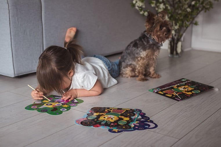 Obrazki są pokryte wierzchnią warstwą, którą można zdrapywać za pomocą dołączonego do zestawu patyczka, według wzoru lub własnych pomysłów. Zdrapywanie to dla dziecka długie godziny angażującej i jednocześnie uspokajającej, wyciszającej zabawy, a gotowe dzieła mogą stać się wspaniałą dekoracją dziecięcego pokoju.